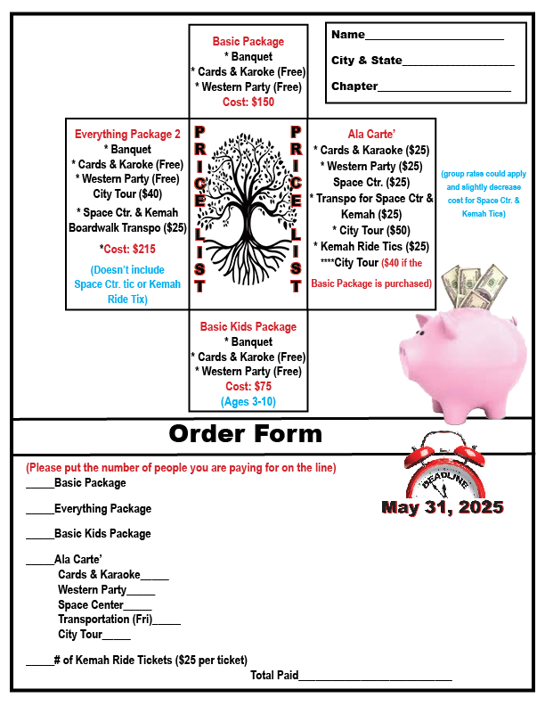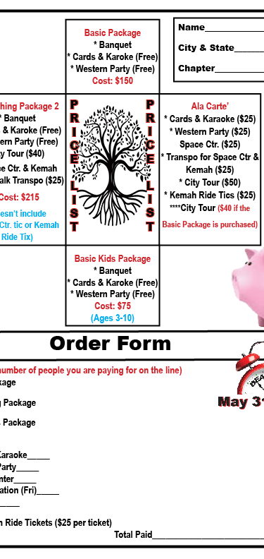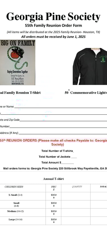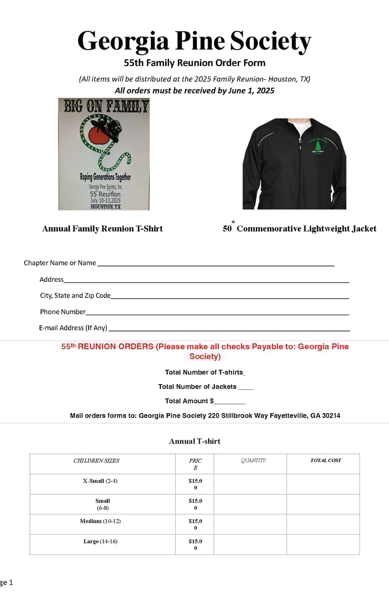 *If you require a vegetarian meal for the banquet, please note on the assessment form Mail: Susie Rome 195 Clydesdale Lane SE, Mableton, GA 30126